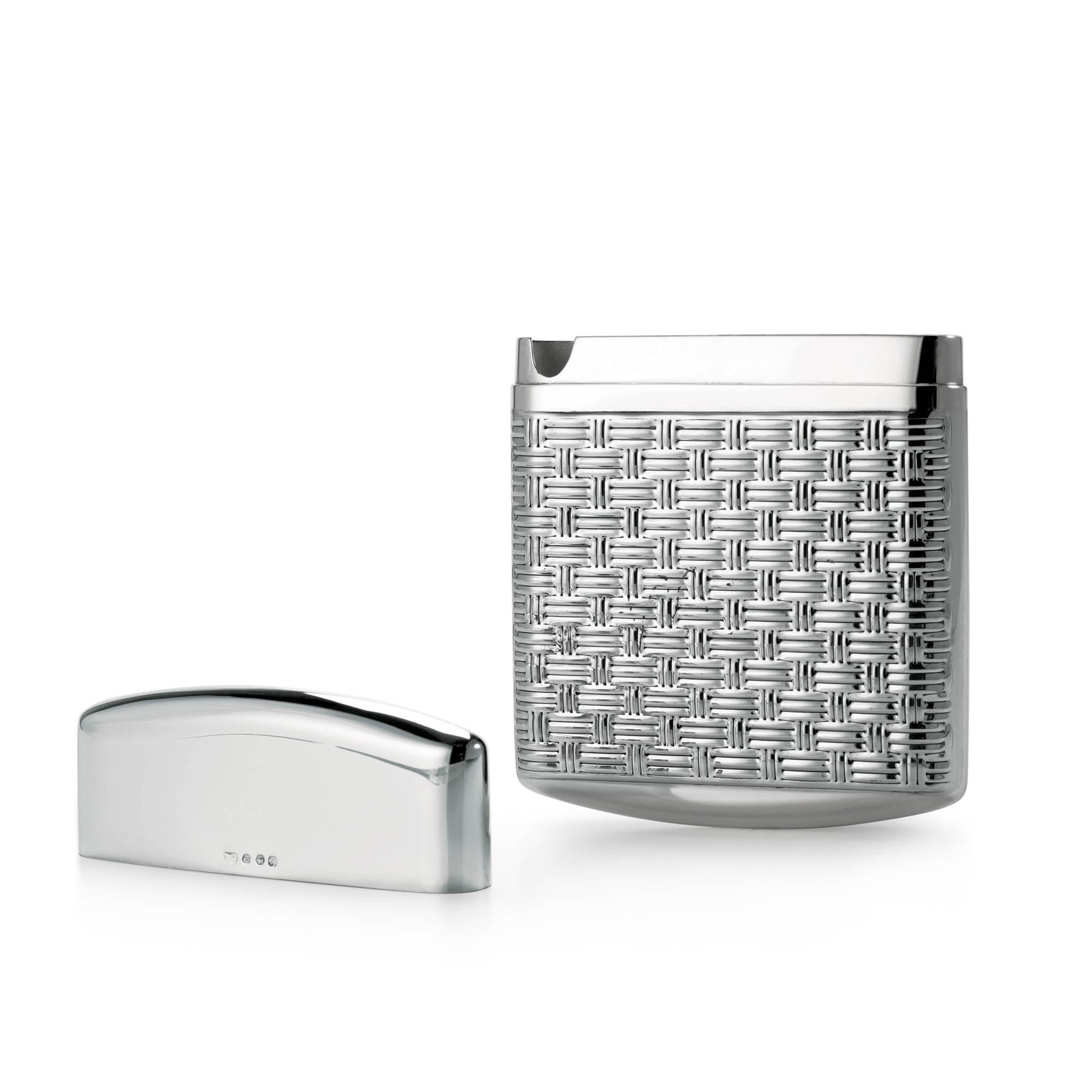 Weave carries a weaving motif on the case’s body. Made of sterling silver with hallmarks on the lids and a luxurious velvet inlay for firm fitting.